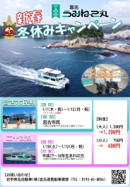 新年あけましておめでとうございます。 宮古市民・二十歳割を行いますのでご乗船お待ちしております。